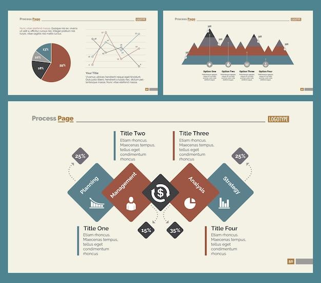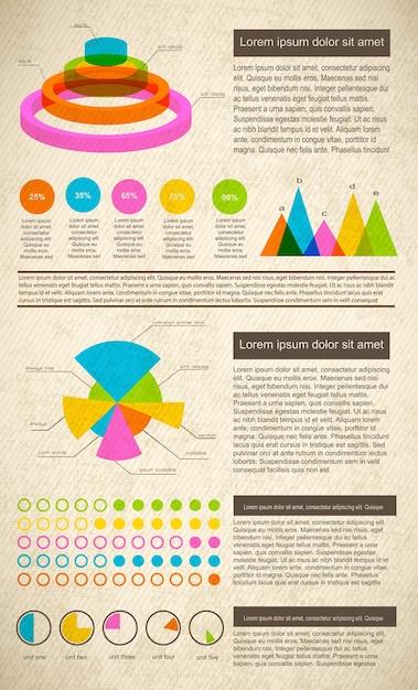 Vintage infographics set in bright colors with diagrams text fields and statistics