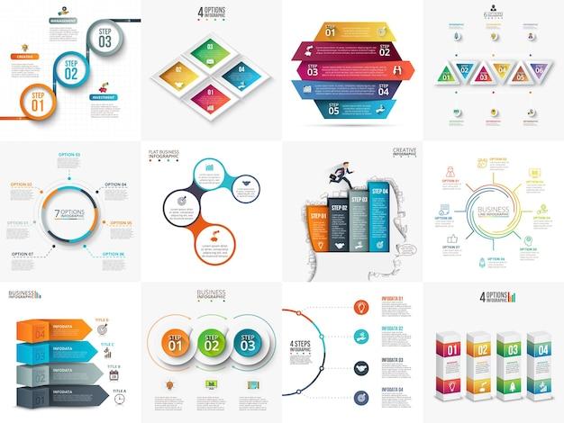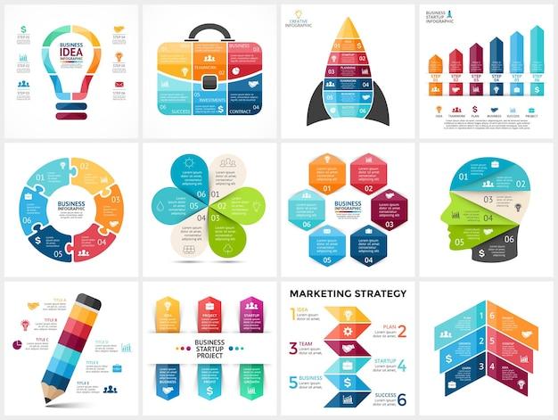 Vector infographics set Business concept with 3 4 5 6 7 and 8 options parts steps or processes