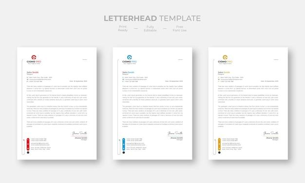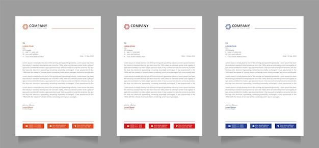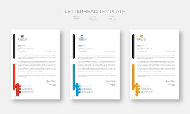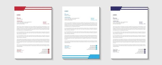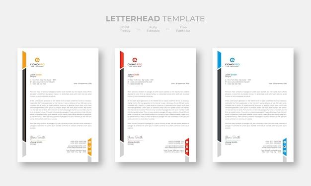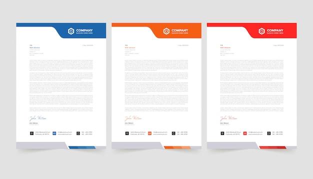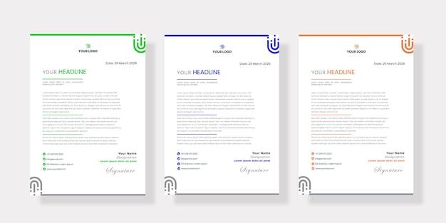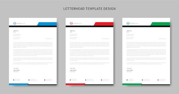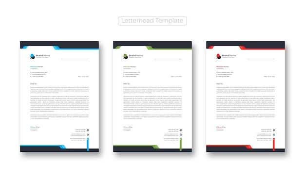 Creative modern letterhead design template set three color free vector