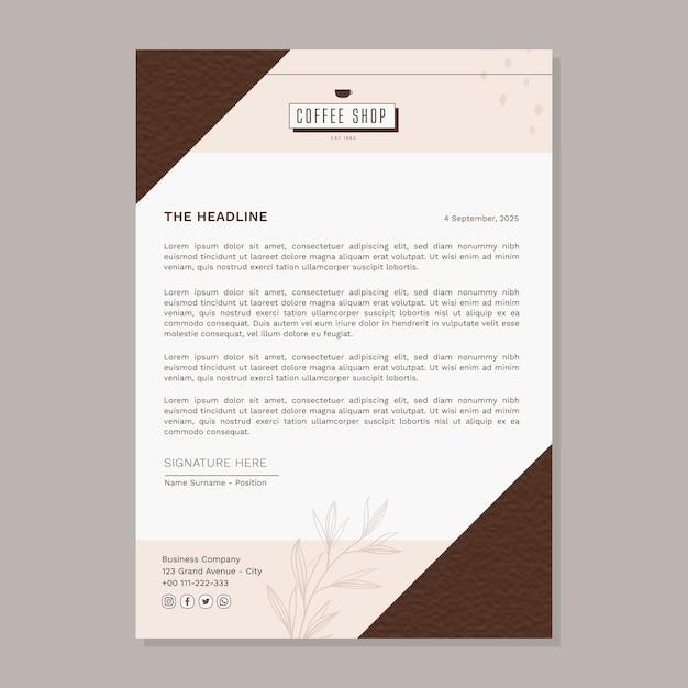 Flat design minimal coffee shop letterhead template