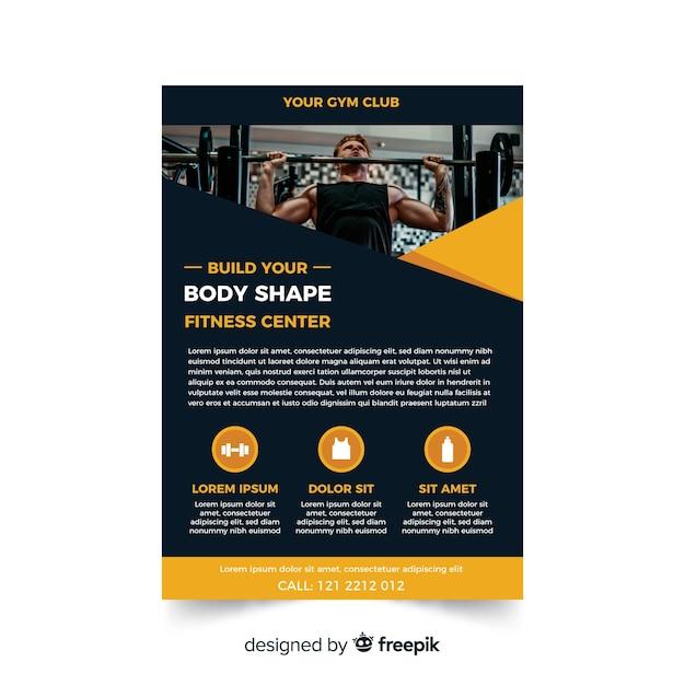 Gym and fitness flyer template with geometric shapes, fitness body build