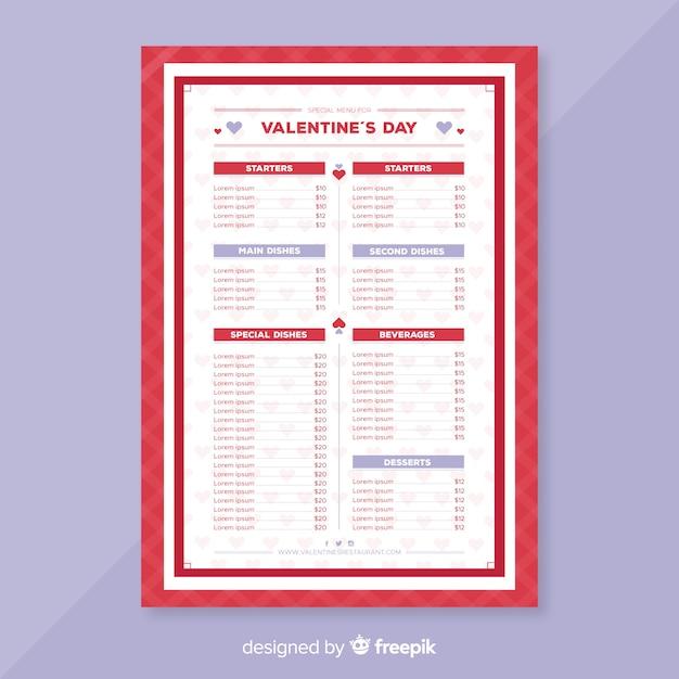 Flat valentine menu template