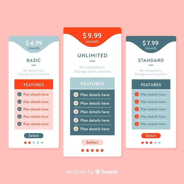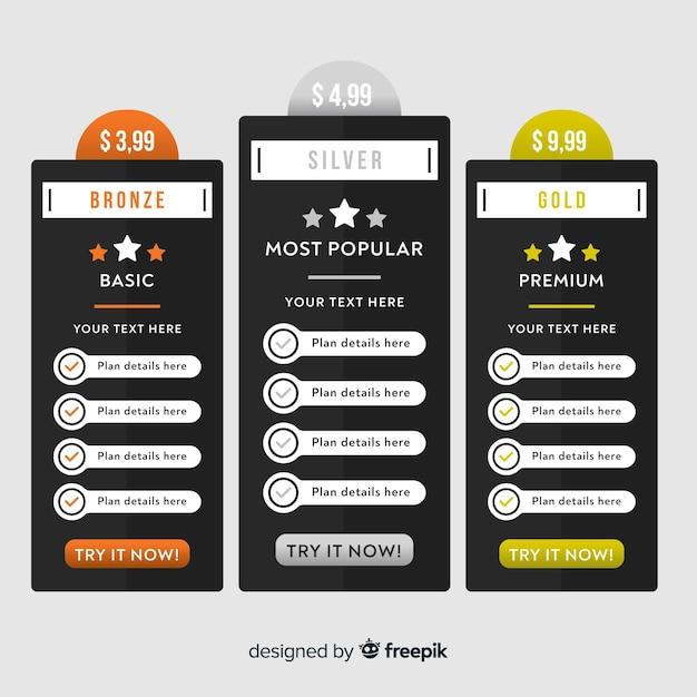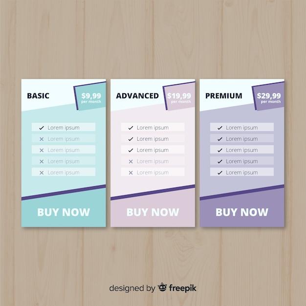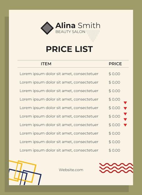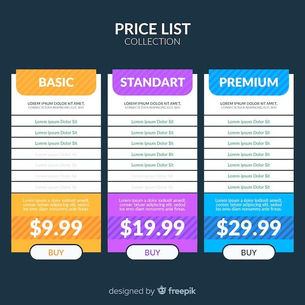 Flat design vector price list template