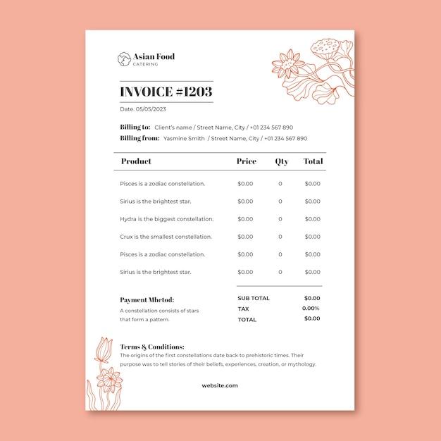 Floral asian food catering invoice
