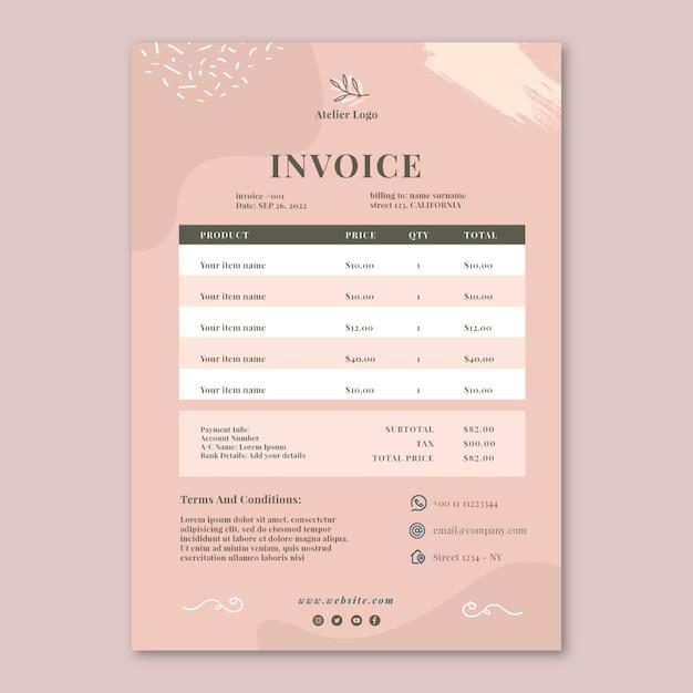 Hand drawn creative atelier invoice template