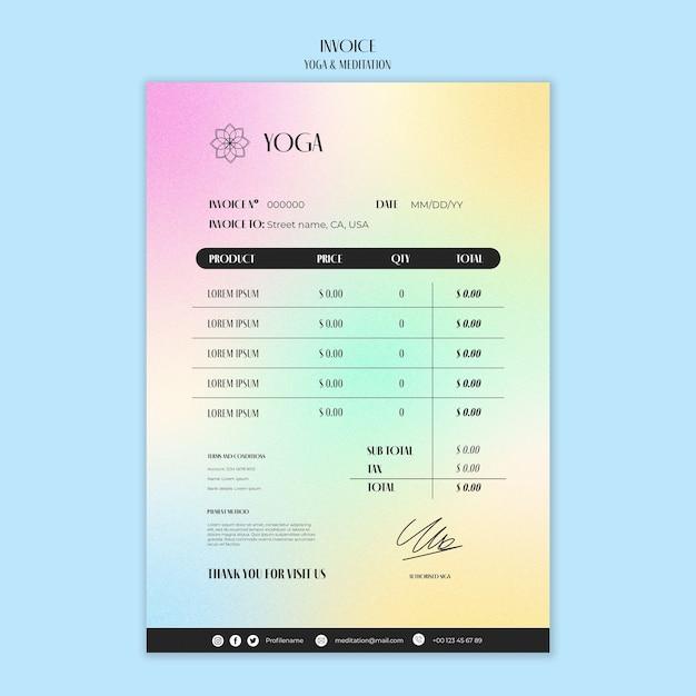 Gradient yoga and meditation invoice template