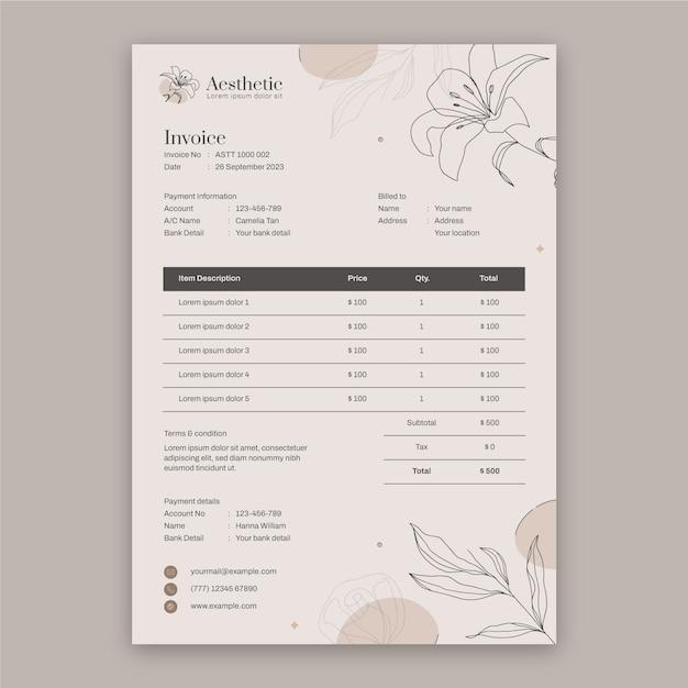 Hand drawn aesthetic medicine invoice template