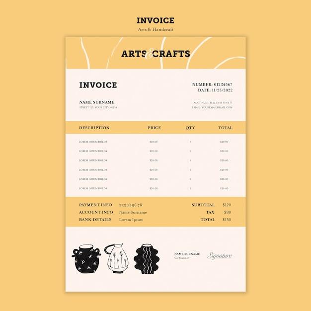 Hand drawn arts and handcraft invoice template