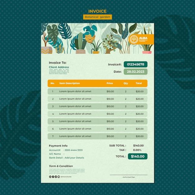 Hand drawn botanical garden invoice template