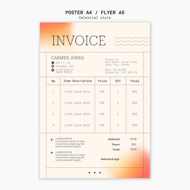 Gradient celestial style invoice template