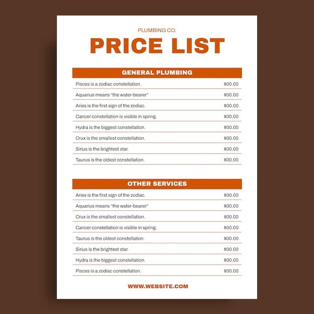 Linear flat plumbing co. price list