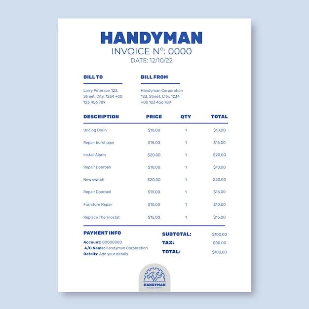 Linear minimalist house repair handyman services invoice