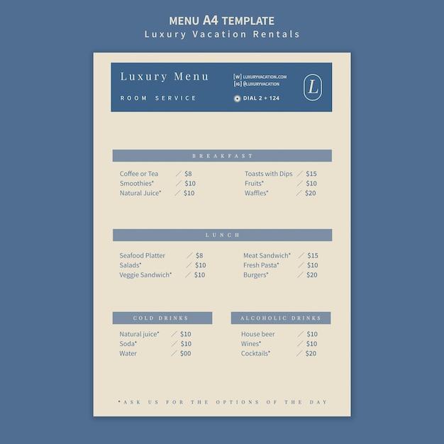 Luxury vacation rentals menu design template