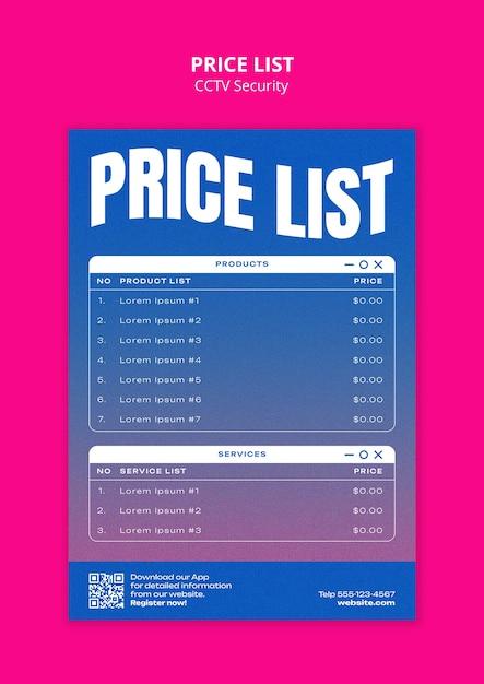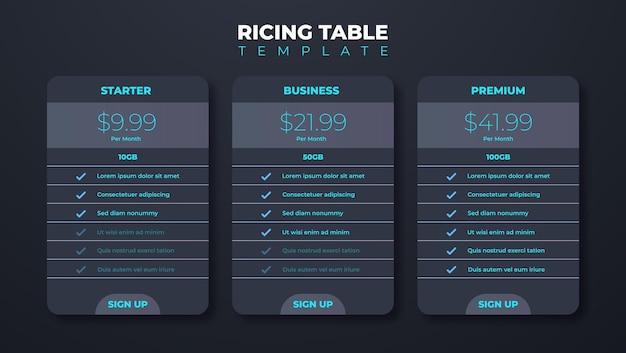Business price chart template Web banner checklist template design