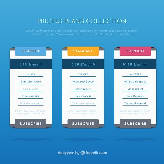 Collection of pricing plans tables