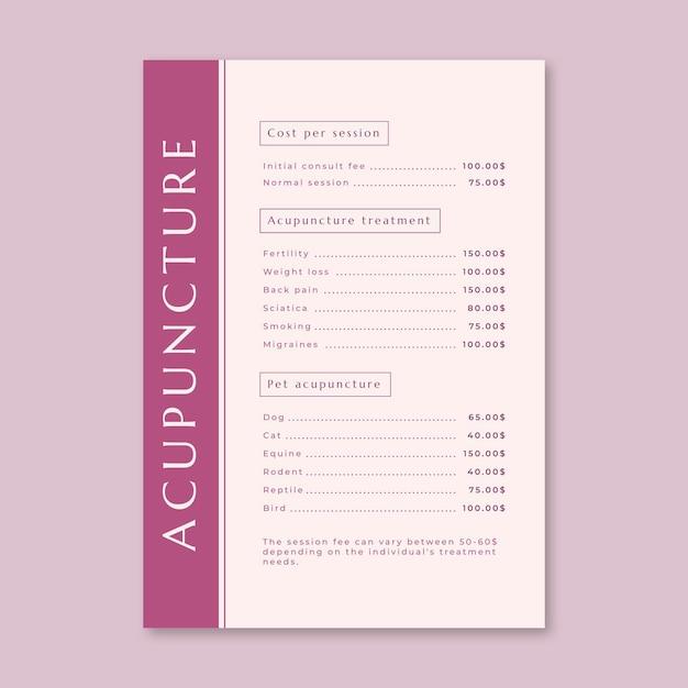 Flat design minimalist acupuncture price list