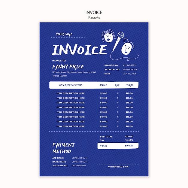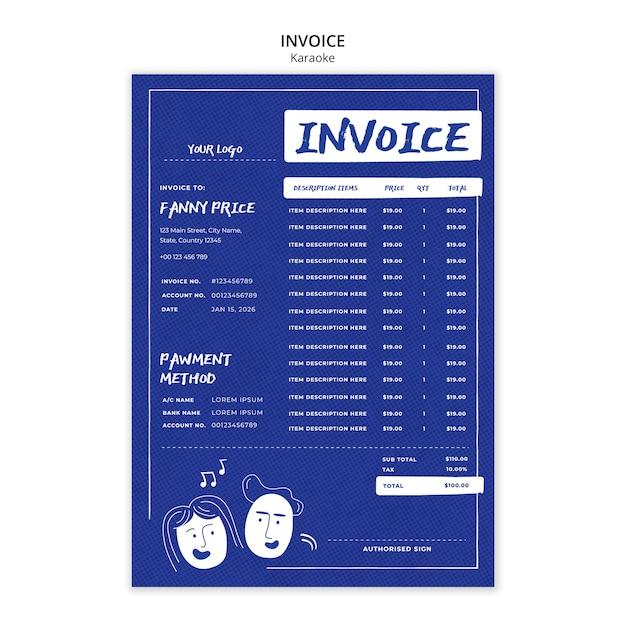 Flat design karaoke invoice template