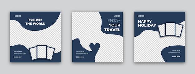 Set of travel sale social media post template Web banner flyer or poster for travelling agency business offer promotion Holiday and tour advertisement banner design