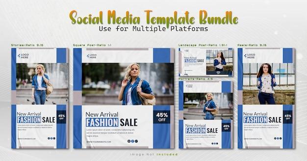 Set of editable Multiple Sizes Social Media template with Fashion Sale Design theme