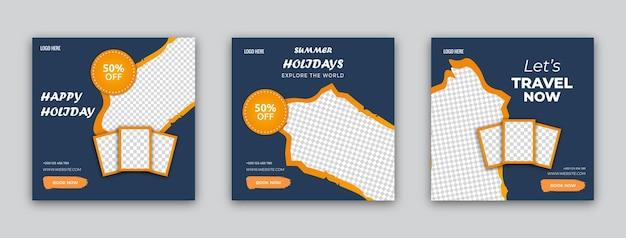 Travel agency social media post template design of summer beach travel Adventure Set of web banner