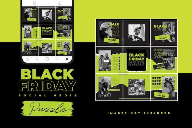 Black friday Social Media Puzzle Template with Hype style and neon color
