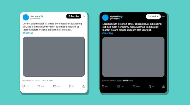 Set of X or Twitter Post or Tweet Mockup Dark amp Light mode With Editable Text