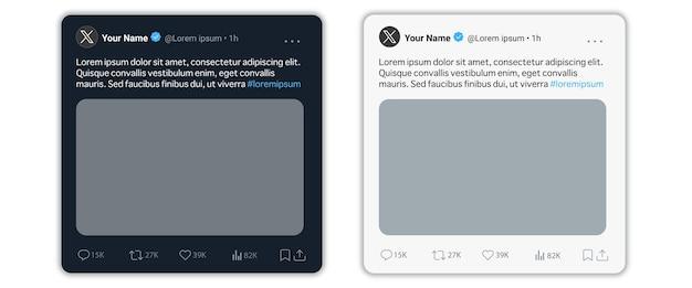 X Twitter post mockup x post frame template and tweet text modern social media app vector