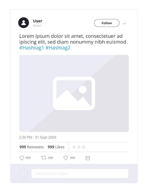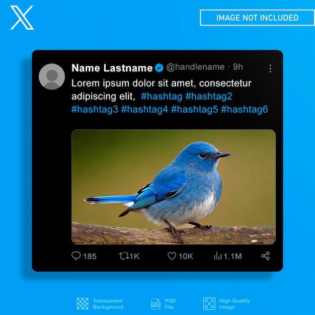 X Twitter post mockup Tweet frame template for news events with editable text and blank avatar